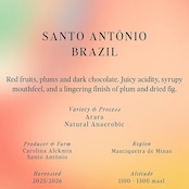 長年にわたり、サント・アントニオのチームは選別収穫から収穫後処理に至るまで、生産のあらゆる側面を進化させてきました。ナチュラルやパルプドナチュラルから実験的な発酵法まで、幅広いスタイルを提供しながら、常に細心の注意と精密さを貫いています。